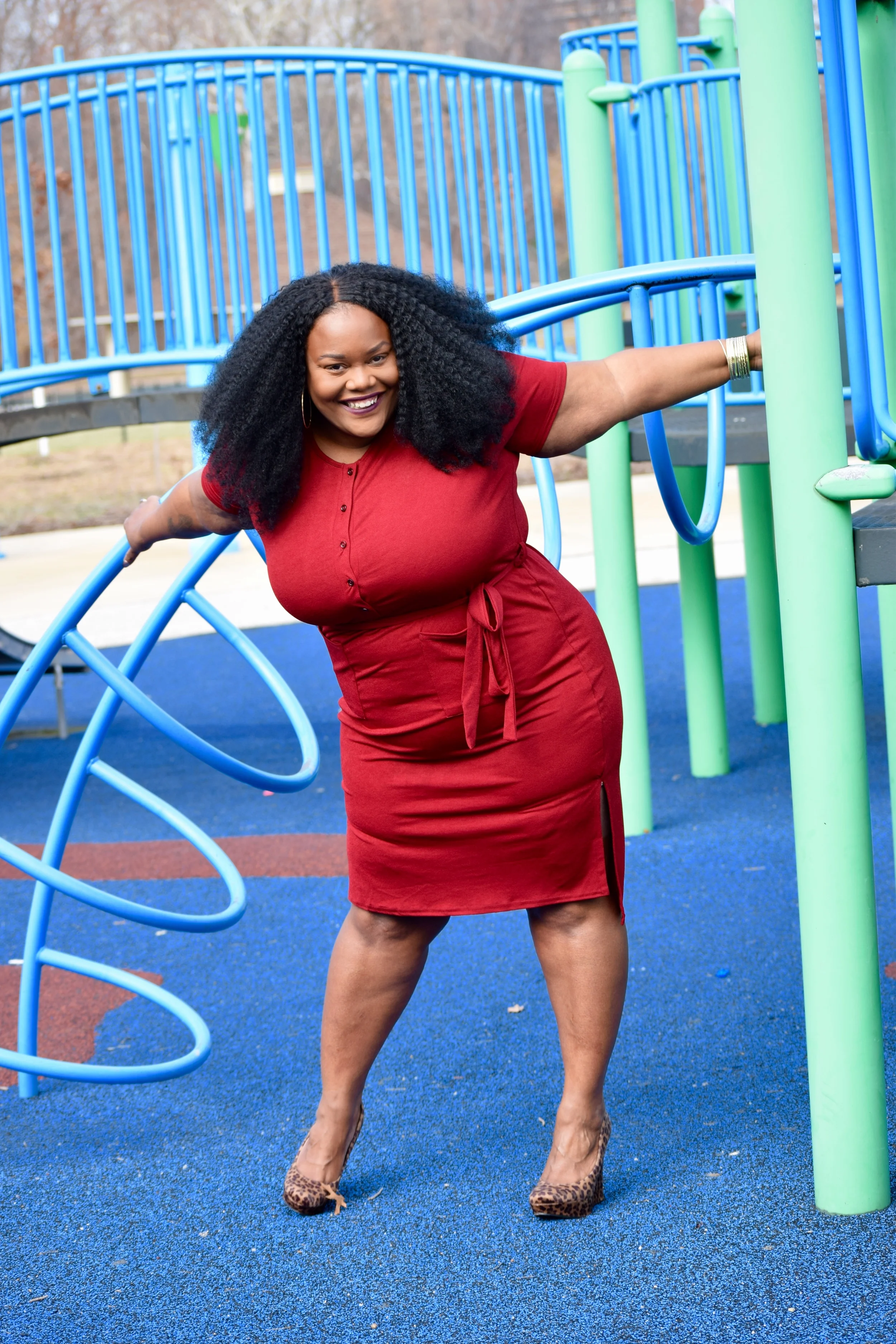 Styling tip: not pictured, but I paired this dress with a black leather jacket with gold details. Also, this dress could be paired with a blazer or trench coat.